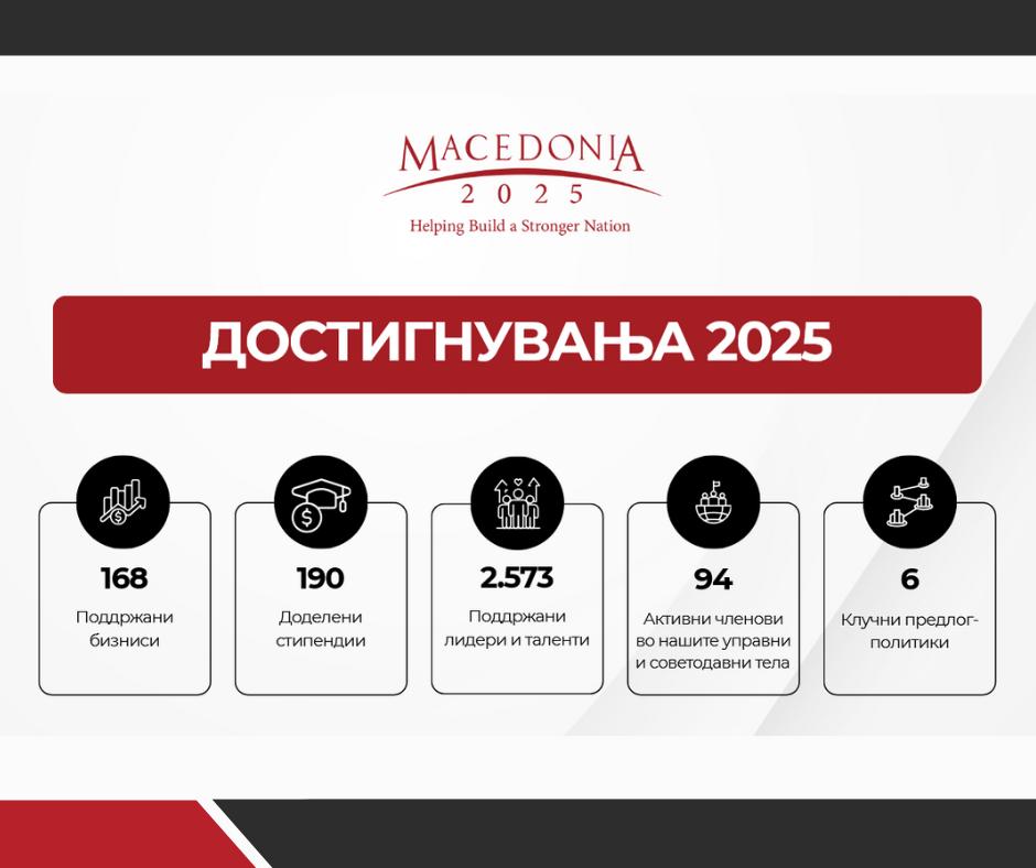 Македонија2025 со рекордни резултати во 2025: поддржани 2.573 лидери и таленти, 168 бизниси и 190 стипендисти