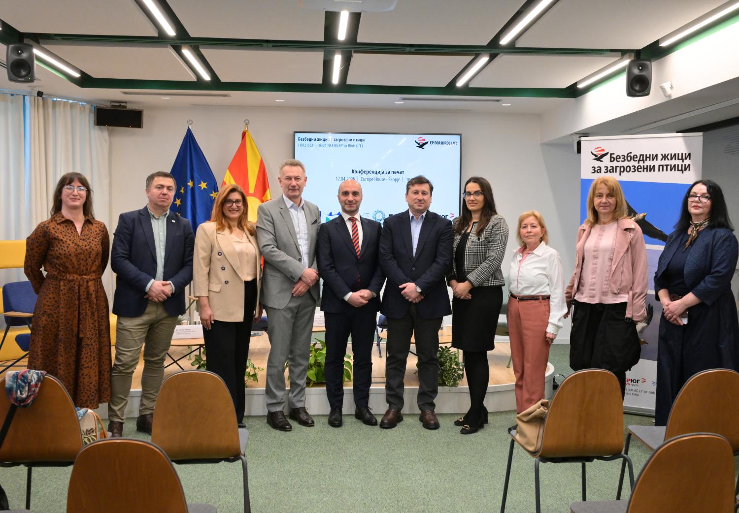 – Со учество на високи претставници на Делегацијата на ЕУ во земјава и на релевантни институции, во „Јуроп Хаус“ во Скопје, се одржа конференција за печат во организација на ЕВН Македонија и Македонското еколошко друштво (МЕД) со што официјално се одбележа почетокот на меѓународниот проект „Безбедни жици за загрозени птици“ (101216021 – LIFE24-NAT-BG-EP for Birds LIFE).