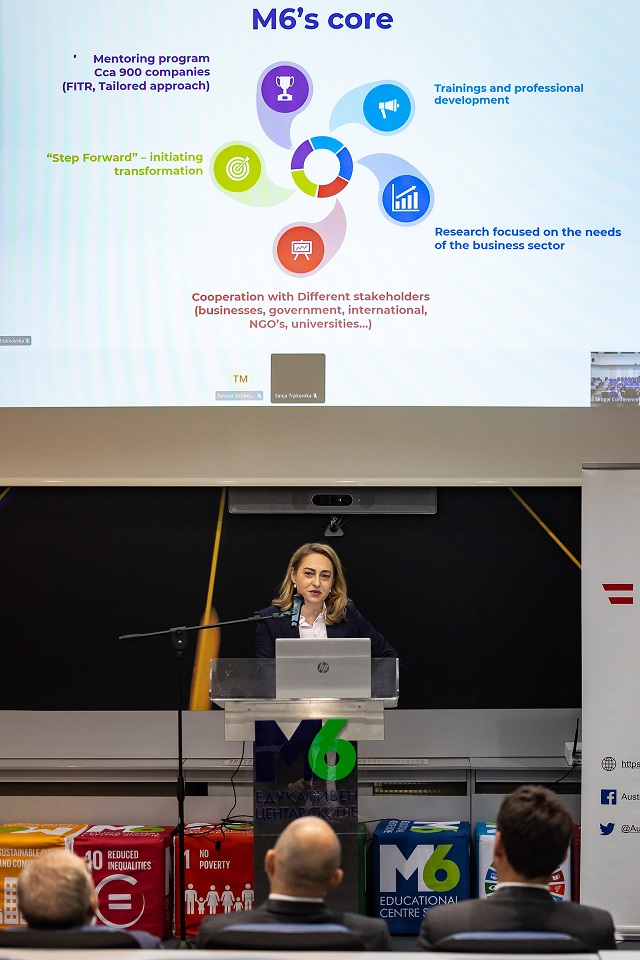 Извршната директорка на М6 Едукативен центар Елена Младеновска Јеленковиќ ги претстави активностите на центарот, кој во својата мисија за трансформација на поединци и компании во државата и регионот, нуди можности за едукација, вмрежување, соработка, проекти и совети од еминентни луѓе од светот на политиката и економијата.