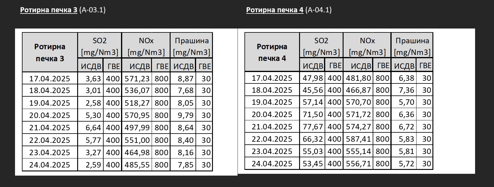 ГВЕ – гранична вредност на емисии (Законски максимално дозволена вредност)