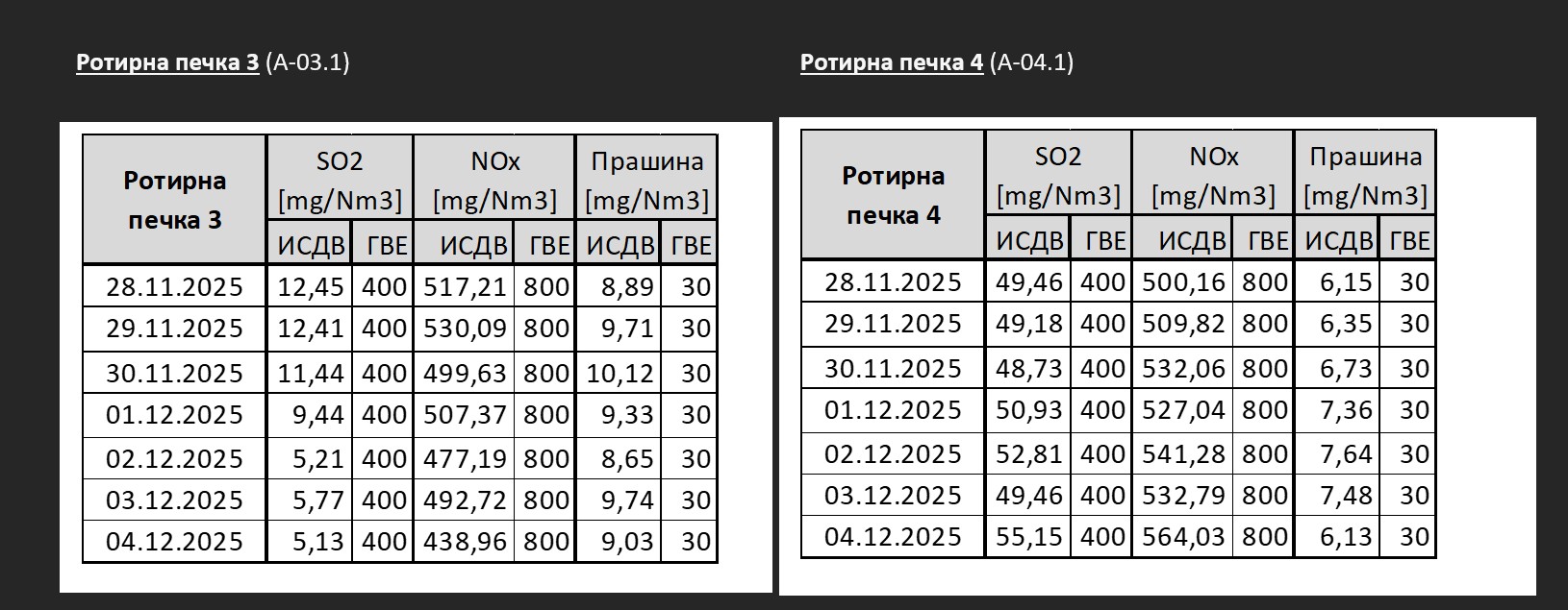Паралелното мерење на амбиенталниот воздух (PM10 честички) во кругот на ТИТАН УСЈЕ не покажува меѓузависност со состојбите со амбиенталниот воздух измерени на други мерни станици, надвор од цементарницата.
