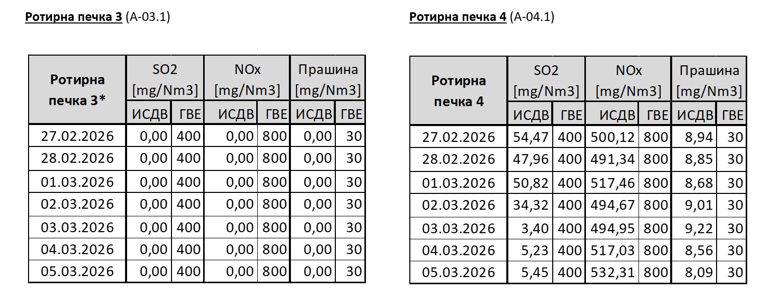 • Емисиите од работата на ТИТАН УСЈЕ постојано се под граничните вредности определени со Закон