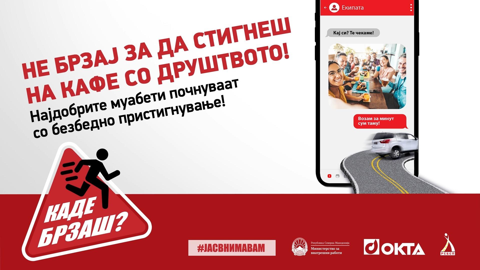Кампањата „Каде брзаш? Не брзај за да стигнеш!“ е фокусирана на предупредување на јавноста за опасноста од неодговорно однесување во сообраќајот преку реални животни ситуации, со цел да поттикне промена на навиките и однесувањето на учесниците во сообраќајот.