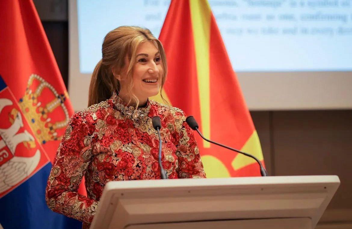 Присутните гости ги поздрави и амбасадорката на Република Србија во Република Северна Македонија, Н.Е. г-ѓа Невена Јовановиќ, која, надоврзувајќи се на обраќањето на српскиот министер за надворешни работи, истакна дека Република Србија, тргнувајќи од вредностите и принципите на слободата и правдољубивоста, кои се наследство од татковците на модерната српска држава, денес цврсто ја гради својата иднина и бележи забрзан економски и технолошки развој. За тоа сведочи и фактот дека во изминатата година Србија беше втората најбрзо растечка економија во Европа. Во тој контекст, амбасадорката Јовановиќ изрази особено задоволство и гордост што Србија ќе биде домаќин на специјализираната светска изложба ЕКСПО 2027, при што ги покани присутните претставници на странските држави да учествуваат на овој престижен настан.